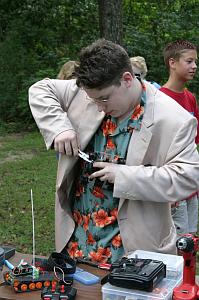 Amdroid-A went into The Capital Offense as a rookie and came out a winner. We had five fights and won them all with ease. The 4x8 foot arena had no hazards or push-outs so most matches were judges decisions. Points were scored based on control, aggression, hits and pins. Amdroid-A had no trouble pinning opponents to the wall and did this frequently. Amdroid-A performed better than I expected. The movie (below) shows a typical fight where Amdroid-A dominated the opponent with repeated hits and pins for the full 3 minutes. We did not get to fight Chiang Shih (spinning bar weapon) so our armor is still untested, however my confidence in Amdroid-A has improved after this event. Amdroid-A will fight next at Dragon*Con Microbattles in Atlanta on labor day weekend. |